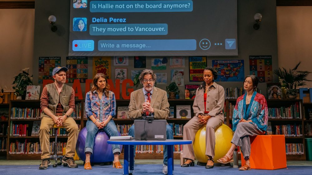 There is a scene that develops as something really unique in comic theater. At least I can say that I never remember that laughter that was so high at the limits of an 800 seater space as what happens with a full house at Pasadena Playhouse during this sequence. The fun part, if you want, is that not so much of it depends on what the role members do on stage. Nothing for them at all, but they basically play straight men and women on the screen over their heads, where we see a rolling of the all -hostile messages that the parents who attend the virtual meeting send the board and each other. In some points, the laughter gets so loud that you can’t even hear what the actor says on stage, and you hope you don’t have to, because the yukes come from the off-scene that, one at a time, goes completely nuclear power in the chat. Finally, the board will have good reason to just snap its host laptop, but not before an evil riotous 10 minutes or so where absolutely no one supports from the keyboard.